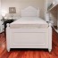 Κρεβάτι remake 60 ' s σε λευκή λάκα , με σκάλισμα , τορναριστές κολώνες και αποθηκευτικά συρτάρια